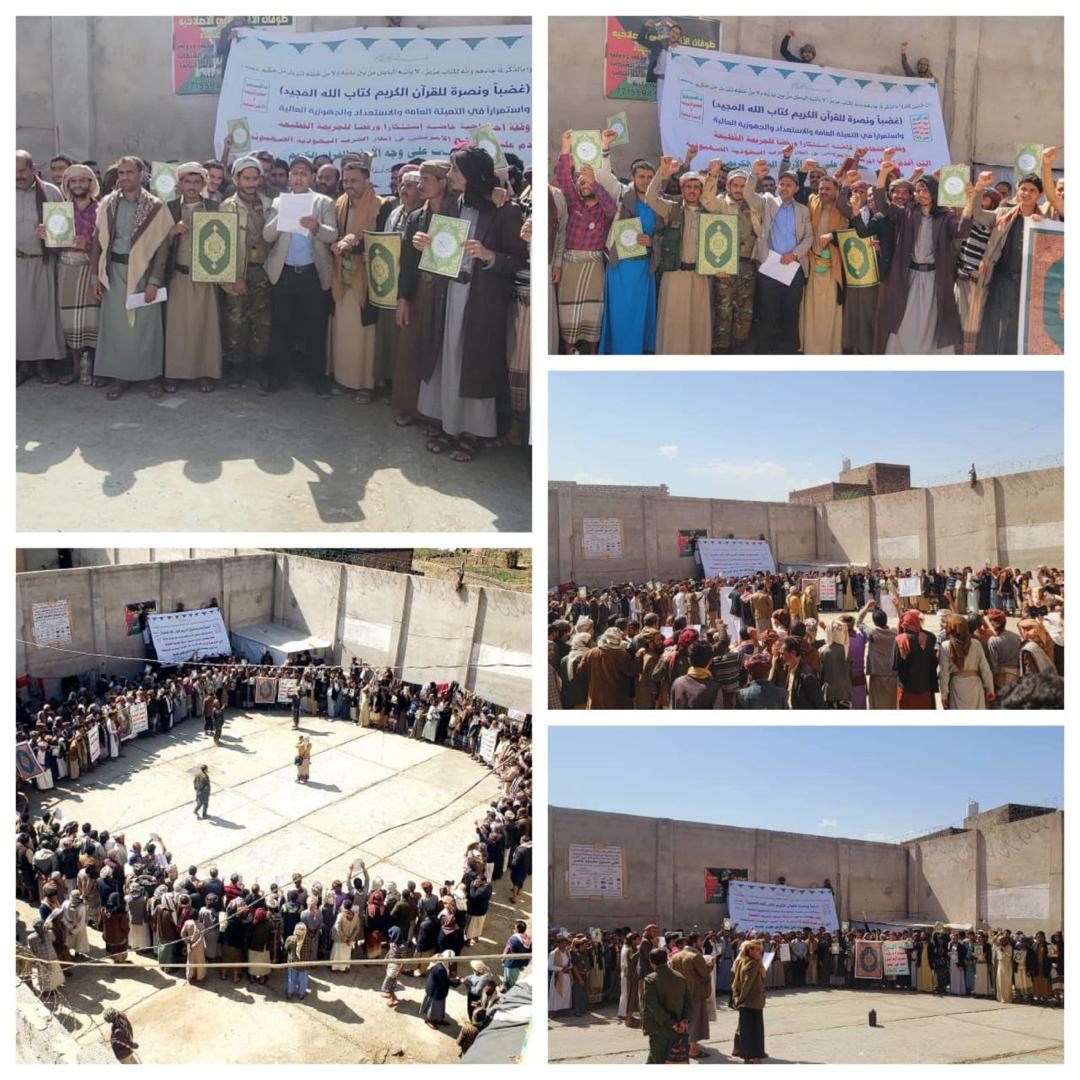 وخلال الوقفة، أكّد مدير الإصلاحية المركزية بمحافظة صنعاء العميد علي أبو كحلاء أنّ هذه الفعالية تأتي استجابةً لتوجيهاتِ قائد الثورة سماحة السيد عبدالملك بدرالدين الحوثي «سلام الله عليه»، وانطلاقاً من الواجب الديني والأخلاقي تجاه كتاب الله العزيز، وتجسيداً لموقف إيماني ثابت لا يقبل المساومةَ أو الصمتَ أمام الجرائمِ الاستفزازيةِ المتعمّدة التي تستهدفُ الإسلامَ ومقدّساته ورموزه.