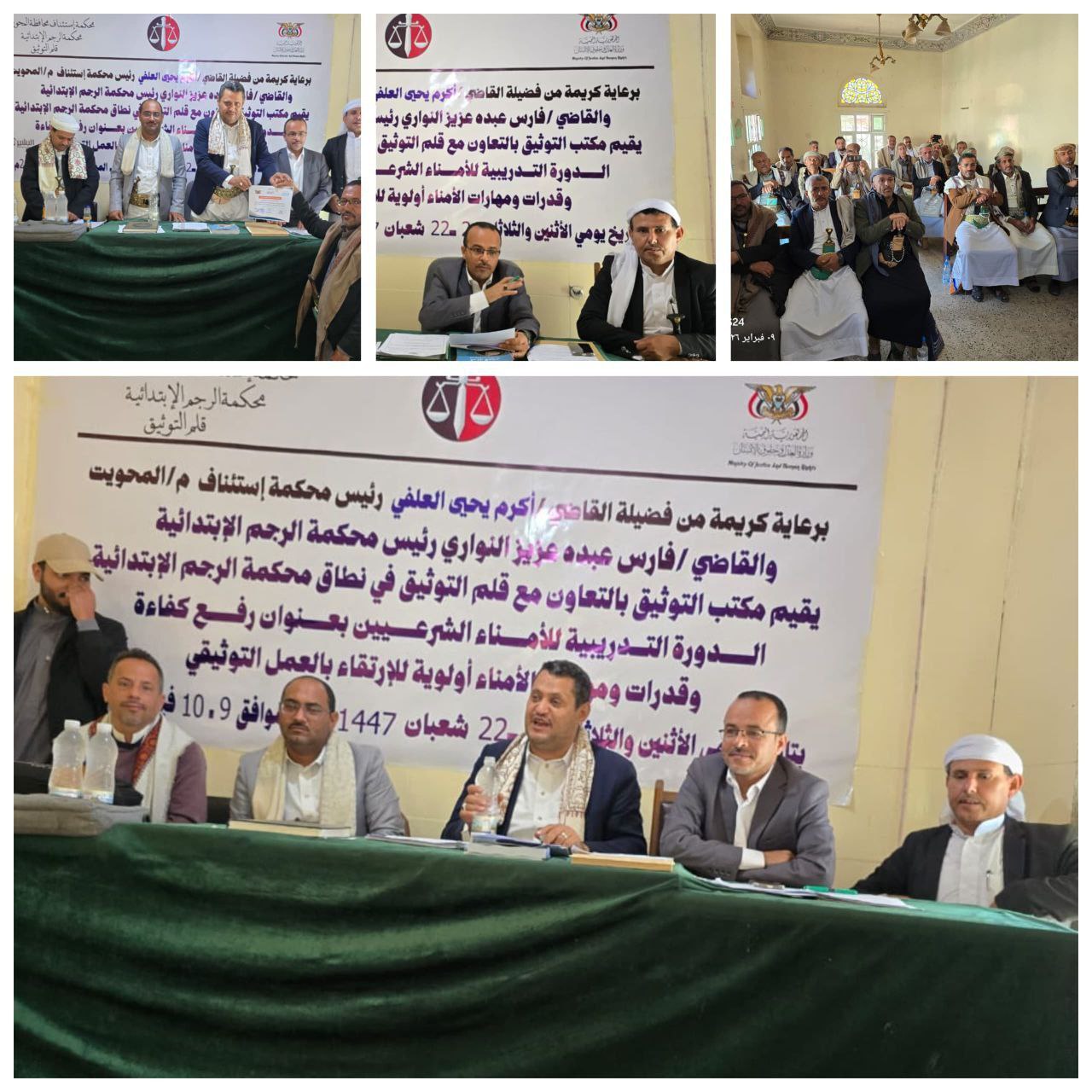 برعاية وحضور رئيس محكمة استئناف محافظة المحويت القاضي أكرم يحيى العلفي، نظّم مكتب التوثيق بمحكمة الاستئناف، بالتعاون مع محكمة الرجم الابتدائية وقلم التوثيق، دورة تدريبية متخصصة للأمناء الشرعيين، ضمن برنامج تأهيل وتطوير الأمناء للعام 1447هـ، بهدف الارتقاء بالأداء التوثيقي وتحسين جودة الخدمات المقدمة للمواطنين.