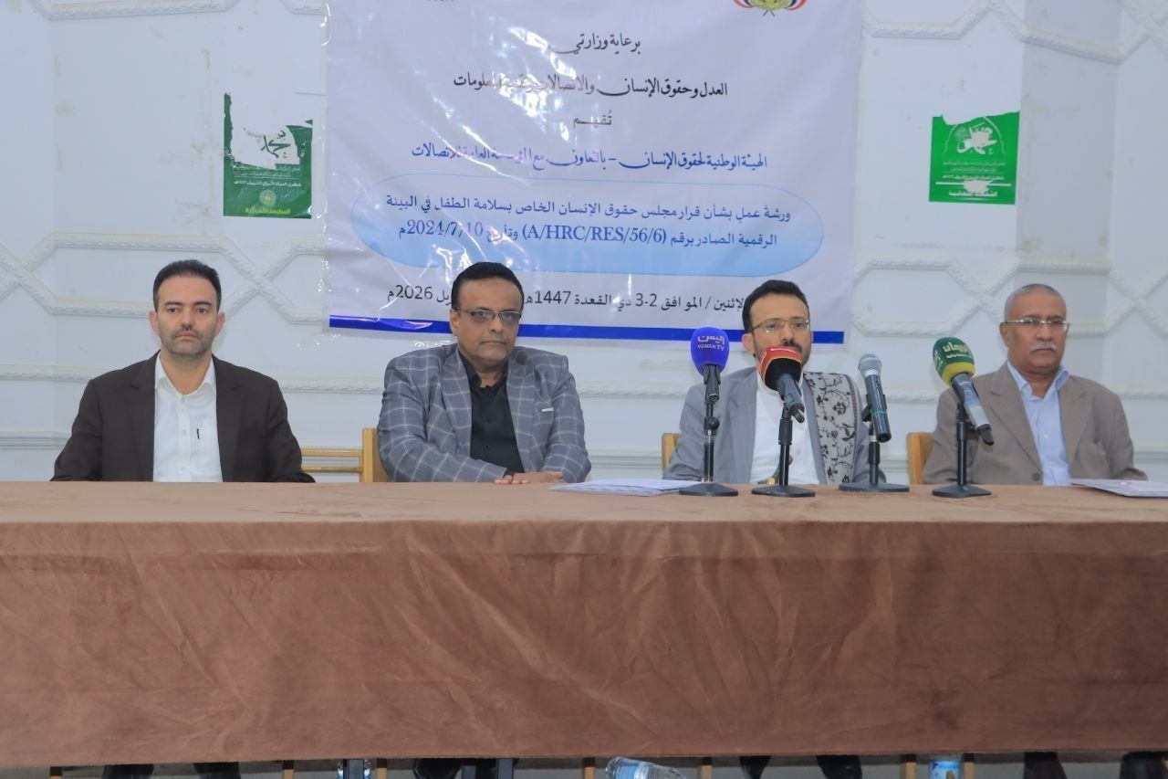 بدأت بصنعاء، اليوم، ورشة عمل بشأن قرار مجلس حقوق الإنسان التابع للأمم المتحدة الصادر بتاريخ 10 يوليو 2024م، والخاص بسلامة الطفل في البيئة الرقمية، تنظمها الهيئة الوطنية لحقوق الإنسان، بحضور القائم بأعمال وزير العدل وحقوق الإنسان القاضي إبراهيم محمد أحمد الشامي، وبدعم من وزارتي العدل وحقوق الإنسان، والاتصالات وتقنية المعلومات.
