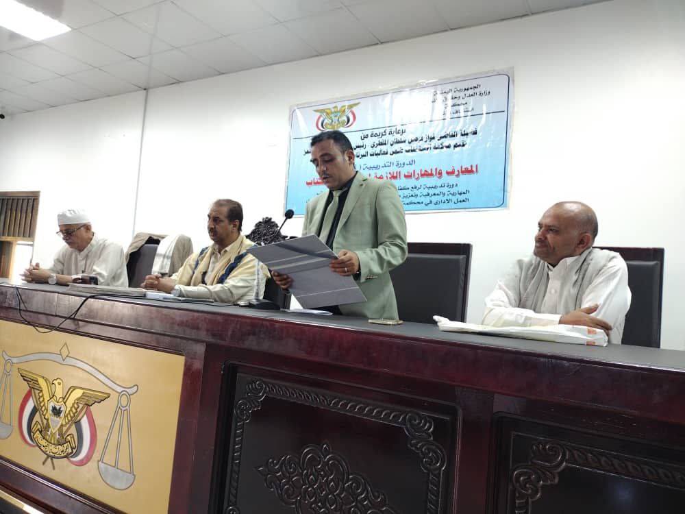 وأشاد القاضي فواز المقطري في تنظيم واقامة هذه الدورة ، مؤكداً أنها تأتي ضمن اهتمامات محكمة الاستئناف لرفع كفاءة الكادر الاداري وتحقيق العدالة الناجزة.