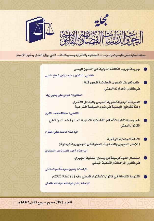 • جريمة تهريب المكالمات الدولية في القانون اليمني، لفضيلة القاضي الدكتور/ عبد المؤمن شجاع الدين رئيس مجلس القضاء الأعلى، أستاذ القانون في جامعة صنعاء.