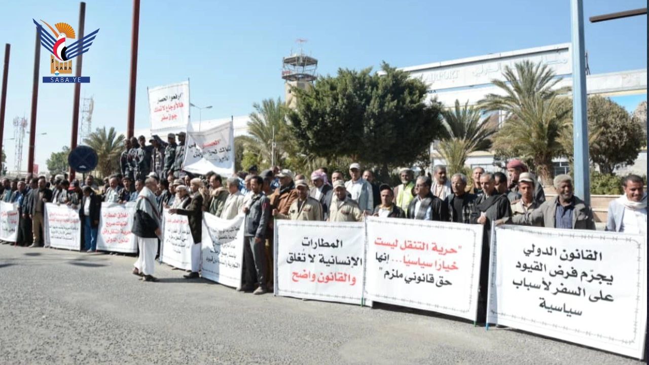 وفي الوقفة والمؤتمر، أكد رئيس الهيئة الوطنية لحقوق الإنسان، أن إغلاق مطار صنعاء الدولي منذ بدء العدوان في 26 مارس 2015م يشكل "جريمة حرب وجريمة ضد الإنسانية".. مشيراً إلى أن المطار كان يخدم ما يقارب مليونين و500 ألف مسافر سنوياً، إضافة إلى 800 ألف مسافر عبر مطار الحديدة الدولي قبل استهدافه.
