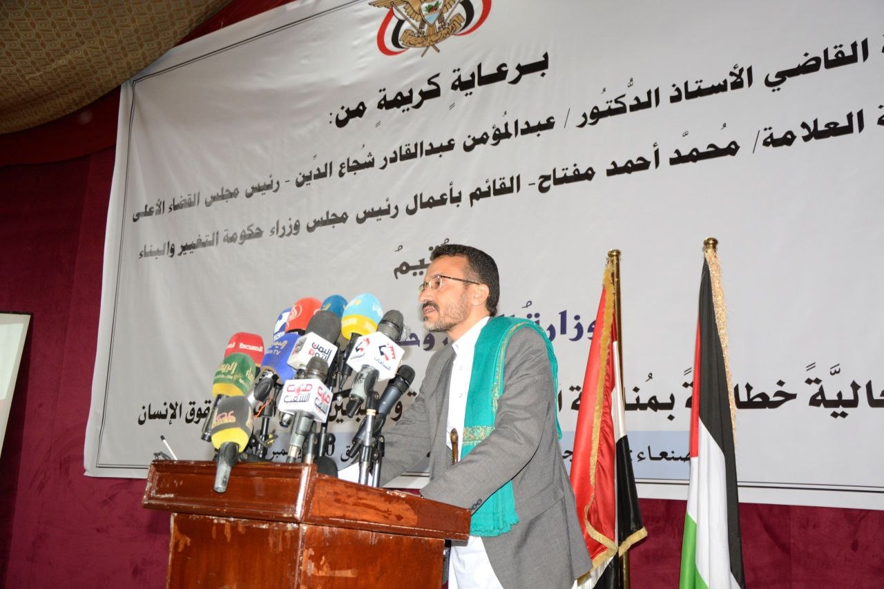وأشار إلى أن الإنسان اليمني حُرم خلال هذه المدة من أبسط حقوقه المكفولة في المواثيق الدولية كحقه في الحياة، والصحة، والتنقل، والأمن والكرامة، وتحول اليمن، تحت نيران العدوان السعودي، الإماراتي، الأمريكي، البريطاني، الصهيوني، إلى مختبر حي لكافة أنواع الأسلحة المحرمة دوليًا، وإلى مساحة لاختراق كل المواثيق الدولية، وانتهاك القيم الإنسانية.