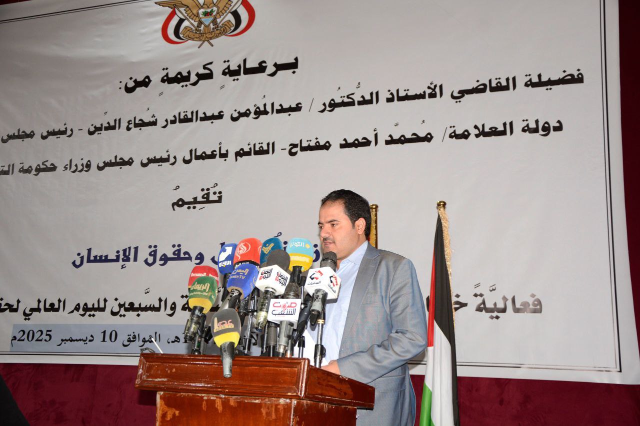 ولفت القائم بأعمال وزير العدل إلى أن اليوم العالمي لحقوق الإنسان تم تأسيسه ليكون مناسبة لتجديد الالتزام العالمي بالحقوق والقيم، لكن ما يراه الجميع اليوم في اليمن وفلسطين من جرائم حرب ضد الإنسانية يمثل انكشافًا صارخًا لازدواجية المعايير.