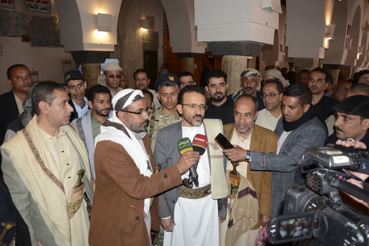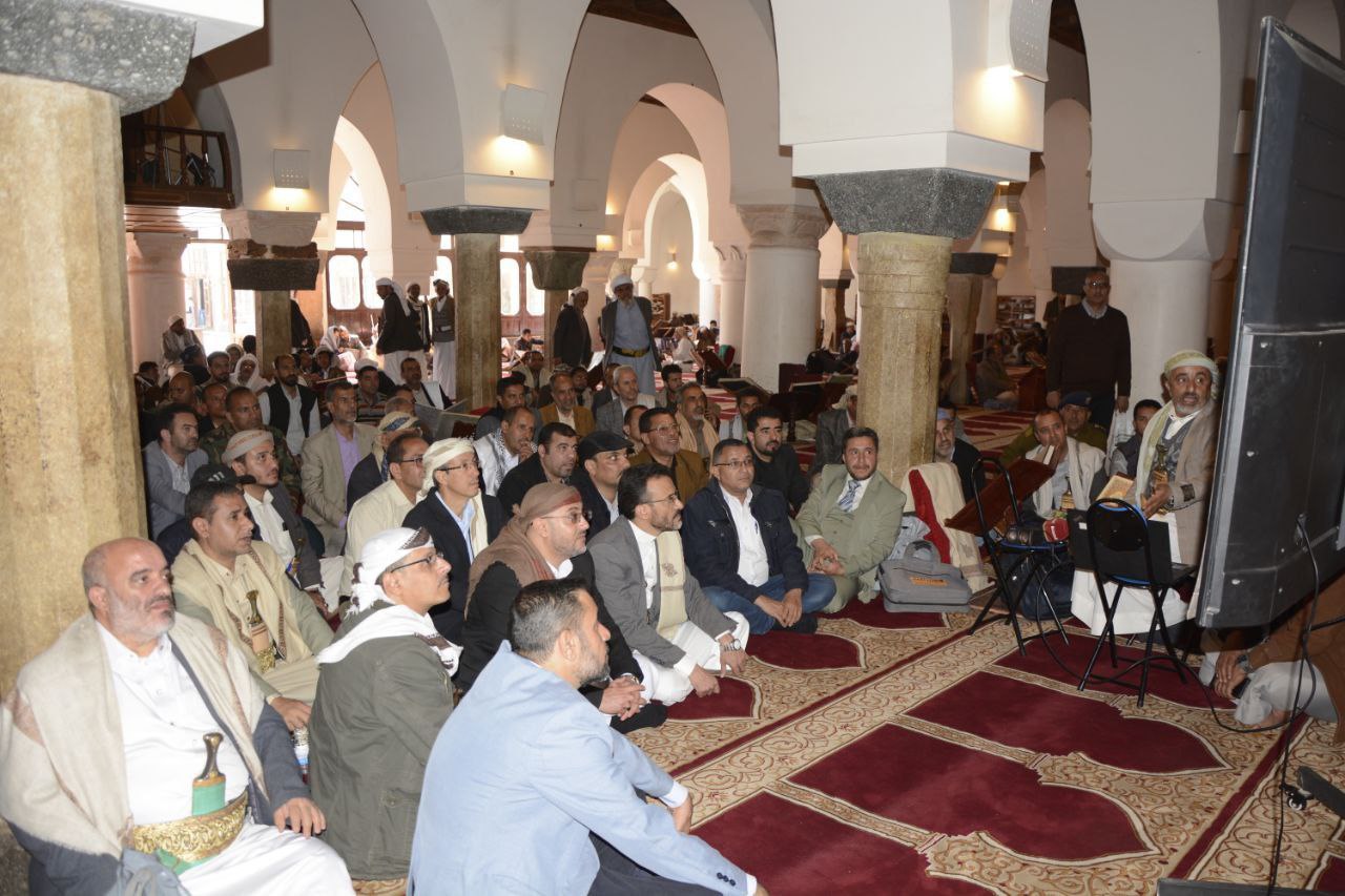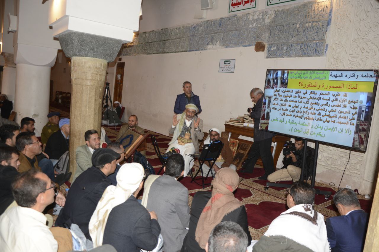 وأشار إلى رمزية الجامع الكبير في ارتباط اليمنيين بالله وبرسوله الكريم وبالدين الإسلامي الحنيف كونه أول جامع أمر رسول الله ببنائه في اليمن.