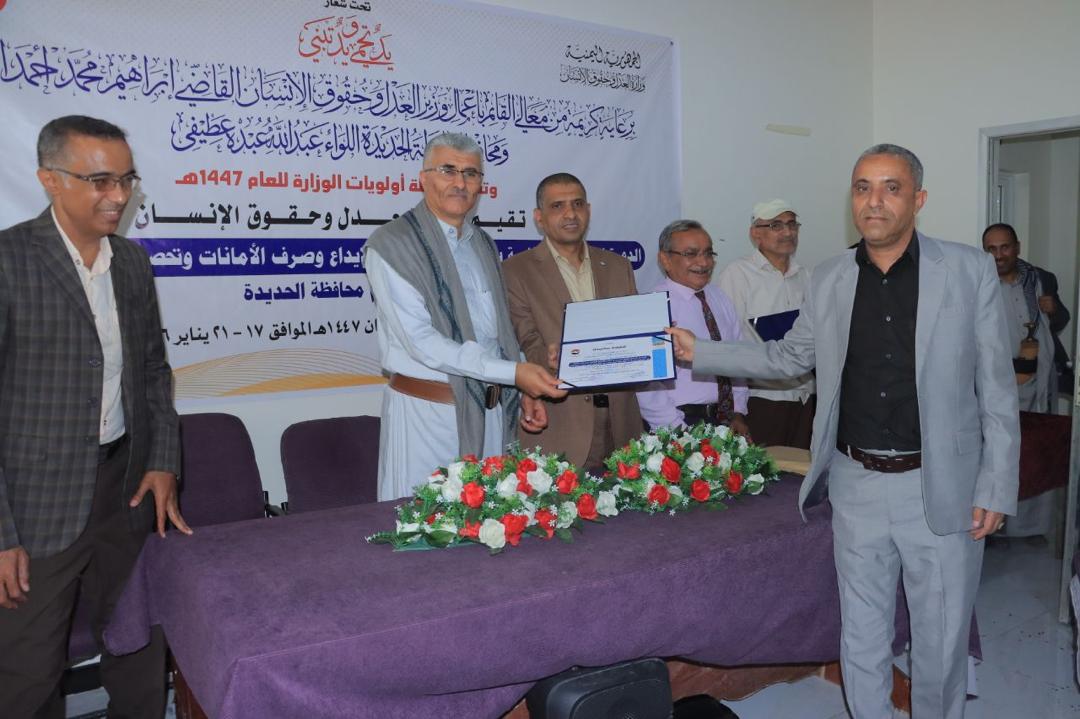 وجرى في ختام الدورتين تكريم المتدربين، تقديرًا لجهودهم وتفاعلهم الإيجابي، وتحفيزًا لهم على مواصلة العطاء والارتقاء بمستوى الأداء، بما يواكب توجهات وزارة العدل وحقوق الإنسان في التأهيل المستمر والتحول الإلكتروني الشامل.