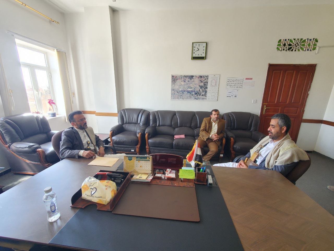 التقى القائم بأعمال وزير العدل وحقوق الإنسان، القاضي إبراهيم محمد أحمد الشامي في مكتبه بديوان عام الوزارة، رئيس مصلحة التأهيل والإصلاح التابعة للوزارة، اللواء إسماعيل عبدالملك المؤيد، في لقاء خُصص لمناقشة عدد من القضايا المتصلة بأوضاع السجون ومرافق الاحتجاز، وسبل تطوير العمل الإصلاحي وتعزيز الجوانب الإنسانية والقانونية المرتبطة به.