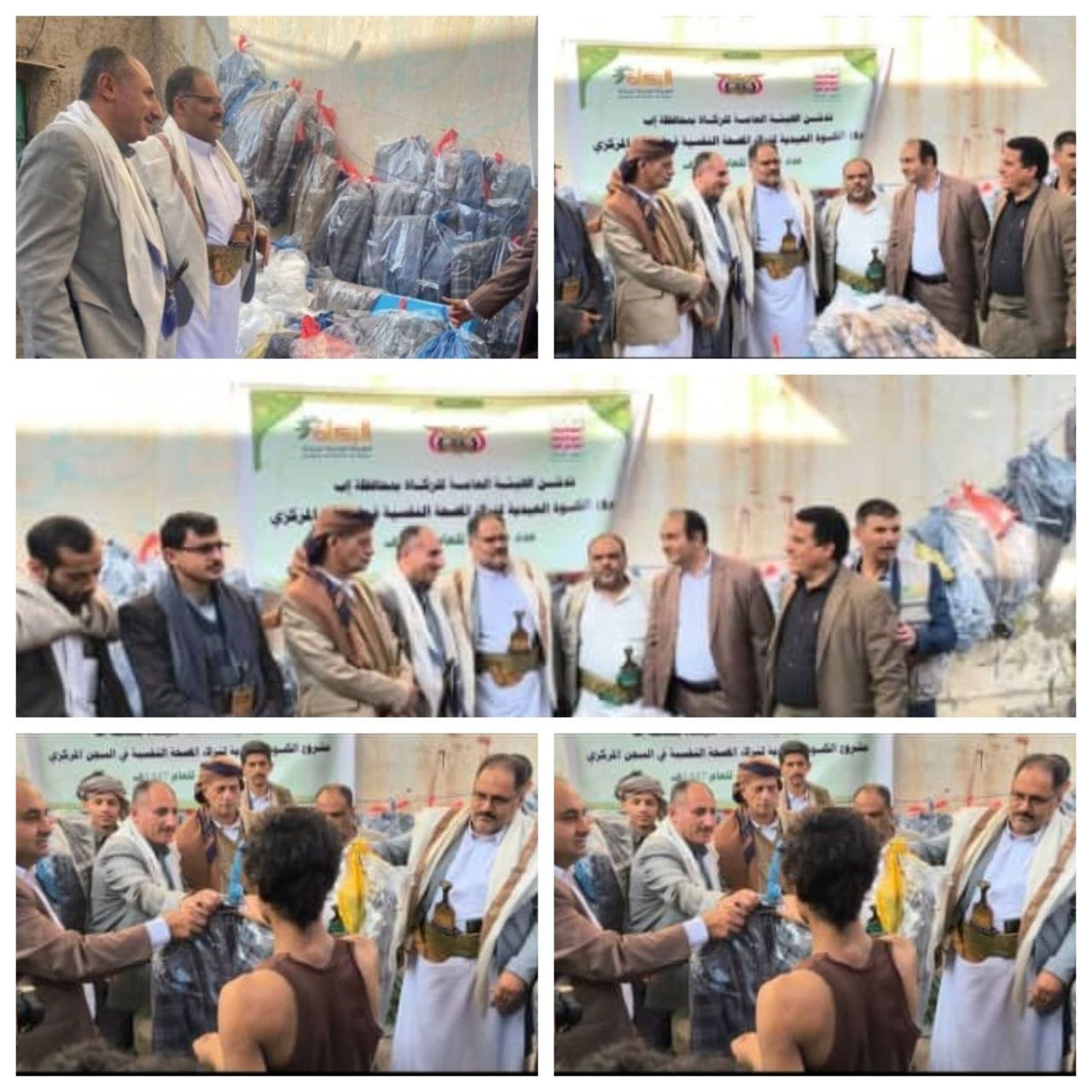 دشن عضو مجلس الشورى الشيخ نبيل عبد العزيز الحبيشي والقاضي ساري محمد صالح العجيلي رئيس محكمة استئناف محافظة إب اليوم مشروع توزيع كسوة العيد الذي تنفذه الهيئة العامة للزكاة لنزلاء المصحة النفسية والأحداث في الإصلاحية المركزية المركزية بالمحافظة ودار الأحداث بالسحول.