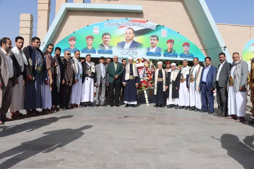 الإثنين، 09 شعبان 1445هـ الموافق 19 فبراير 2024م صنعاء - سبأ: زارت قيادة السلطة القضائية اليوم، ضريح الشهيد الرئيس صالح الصماد ورفاقه في ميدان السبعين بالعاصمة صنعاء، بالتزامن مع الذكرى السنوية لاستشهاده. وخلال الزيارة وضع رئيس المجلس القاضي أحمد يحيى المتوكل، ورئيس المحكمة العليا القاضي الدكتور عصام السماوي، ووزير العدل بحكومة تصريف الأعمال القاضي نبيل العزاني، ورئيس هيئة التفتيش القضائي القاضي أحمد الشهاري، وأمين عام مجلس القضاء القاضي سعد هادي، وعدد من قيادات السلطة القضائية، إكليلاً من الزهور على ضريح الشهيد الصماد، وقرأوا الفاتحة على روحه وأرواح رفاقه وكافة شهداء الوطن. كما زار رئيس مجلس القضاء ومعه عدد من قيادات السلطة القضائية معرض الشهيد الرئيس الصماد، واطلعوا على ما يحتويه من صور ومجسمات ومقتنيات، توثق جانباً من سيرة حياته النضالية والوطنية ومواقفه الإنسانية، وزياراته لمختلف جبهات العزة والكرامة. وأوضح القاضي المتوكل أن الشهيد الصماد، قدم نموذجا مشرفا في قيادة الدولة والمسئولية، وكسب حب واحترام الجميع، وأثمرت تضحياته اليوم في مواجهة قوى الاستكبار العالمي الصهيوني الأمريكي. أشار إلى أن الشهيد صالح الصماد سيظل حاضرا في وجدان الجميع بما قدمه من تضحيات ومواقف وطنية خالدة.. مؤكدا المضي على نهجه ومشروعه النهضوي لبناء الدولة "يد تحمي ويد تبني"، والدفاع عن حرية وسيادة الوطن. وأشاد الزائرون بالدور الجهادي للشهيد الصماد وحنكته القيادية، ومواقفه الوطنية. رافقهم عضوا مجلس القضاء القاضي أحمد العقيدة، والقاضي عبدالله عجاج، والمحامي العام الأول القاضي عباس الجرافي، ورئيسا محكمة ونيابة استئناف الأمانة القاضي أحمد العزاني، والقاضي أحمد أبو منصر، ورئيس محكمة استئناف صنعاء القاضي عبد الحميد الشرفي، ورئيس نيابة استئناف جنوب الأمانة القاضي أحمد القيز. ـــــــــــــــــــــــــــــــــــــــــــــــ القناة الرسمية لوزارة العدل اليمنية على التيليجرام https://t.me/ict_moj_ye الصفحة الرسمية لوزارة العدل على الفيسبوك https://www.fb.com/moj.ye.gov الموقع الرسمي لوزارة العدل https://moj.gov.ye