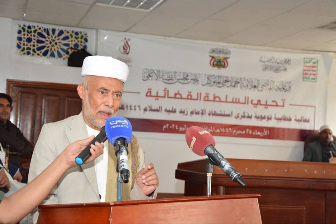 الأربعاء، 25 محرم 1446هـ الموافق 31 يوليو 2024م صنعاء- سبأ: أحيت قيادة السلطة القضائية اليوم، بصنعاء ذكرى استشهاد الإمام زيد بن علي عليهما السلام بفعالية خطابية. وفي الفعالية أكد رئيس مجلس القضاء الأعلى القاضي أحمد يحيى المتوكل، أهمية إحياء ذكرى استشهاد الإمام زيد عليه السلام الذي سار على نهج جده الإمام الحسين في مواجهة المستكبرين وفقا للمنهج القرآني، وجسد حقيقة الجهاد في مواجهة الظلم والاستكبار. وأشار القاضي المتوكل في الفعالية التي حضرها نائب وزير العدل الدكتور إسماعيل الوزير، ورئيس هيئة التفتيش القضائي القاضي أحمد الشهاري، وأمين عام مجلس القضاء القاضي سعد هادي، ورئيس المكتب الفني بوزارة العدل القاضي خالد البغدادي، إلى أهمية هذه الذكرى لما تحمله من دروس وعبر تحتاجها الأمة للتحرك في إطار المسؤولية كواجب جهادي. ولفت إلى أن الإمام زيد نشأ في أسرة طاهرة مؤمنة وكان مرتبطا بالقرآن الكريم في كل تحركاته ومواقفه. وقال" تحرك الإمام زيد في أصعب الظروف وصدع بالحق فيما كان الجميع غارقا بالصمت والخضوع والاستسلام أمام الطغيان والظلم والاستبداد والسيطرة على واقع الأمة، فتحرك الإمام زيد على منوال جده الحسين بن علي وسار على المنهج القرآني في مواقفه الجهادية مستشعرا المسؤولية في مواجهة الظالمين". وأضاف" ومن وحي هذه الذكرى وهويتنا الايمانية نجسد المواقف الصادقة في مواجهة أعدائنا المستكبرين من اليهود وأعوانهم وعدم الرضوخ والخنوع والاستسلام للأعداء". ولفت رئيس مجلس القضاء إلى أن المجاهدين الابطال في محور المقاومة على أتم الاستعداد والجاهزية للوقوف إلى جانب أبطال المقاومة في غزة لمواجهة الصهاينة المحتلين والدفاع عن المقدسات. تخللت الفعالية التي حضرها عدد من قضاة وموظفي السلطة القضائية، قصيدة للقاضي عبدالوهاب الشيخ عبرت عن عظمة المناسبة. ـــــــــــــــــــــــــــــــــــــــــــــــ القناة الرسمية لوزارة العدل اليمنية على التيليجرام https://t.me/ict_moj_ye الصفحة الرسمية لوزارة العدل على الفيسبوك https://www.fb.com/moj.ye.gov الموقع الرسمي لوزارة العدل https://moj.gov.ye