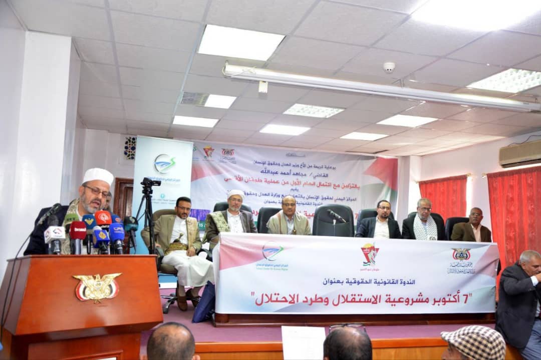 الثلاثاء، 12 ربيع الآخر 1446هـ الموافق 15 أكتوبر 2024 صنعاء - الاعلام القضائي : نظمت وزارة العدل وحقوق الانسان و المركز اليمني لحقوق الإنسان ،اليوم، ندوة قانونية حقوقية بعنوان"7 أكتوبر مشروعية الاستقلال وطرد الاحتلال". وفي افتتاح الندوة، أوضح رئيس مجلس القضاء الأعلى القاضي الدكتور عبد المؤمن شجاع الدين، أن عملية طوفان الأقصى كانت خطوة ضرورية واستجابة طبيعية لمواجهة ما يحاك من مخططات إسرائيلية تستهدف تصفية القضية الفلسطينية. وأشار إلى أن العدو الإسرائيلي وأذنابه كانوا يراهنون على أن طوفان الأقصى المبارك سيتم القضاء عليه في بضعة أيام ونحن الآن نحتفي بالذكرى السنوية الأولى لطوفان الأقصى المبارك. وقال: "في حين تنصلت الأنظمة العربية عن مسؤولياتها الدينية والقومية والأخلاقية كانت قيادتنا الثورية ممثلة بقائد الثورة السيد عبدالملك بدرالدين الحوثي سباقة في التعبير عن الموقف الإيماني والوطني والأخلاقي للشعب اليمني في مساندة طوفان الأقصى وما زال هذا الموقف ثابتا". بدوره، أكد وزير العدل وحقوق الانسان القاضي مجاهد احمد عبدالله على ان ٧ اكتوبر من العام ٢٠٢٣م مثل تاريخاً مفصلياً وعملية تاريخية فاصلة لحركات التحرر الفلسطيني على طريق مواجهة الاحتلال الصهيوني البغيض ، مشيرا الى ان هذا التاريخ خط معالم جديدة من فصول ومحاور المقاومة والمواجهة لمخططات الاحتلال الخبيثة و مشاريع التصفية للقضية الفلسطينية و التطبيع مع الكيان التي كانت تعمل عليها الادارة الامريكية والكيان الصهيوني وانظمة التطبيع والخيانة العربية في المنطقة. ونوه الوزير مجاهد خلال كلمته الى اهمية هذه المناسبة والدروس الكبيرة التي يجب استلهامها من مقاومة الشعب الفلسطيني التي لقنت العدو خلال عام كامل درسا كبيرا في الجهاد و سطر ملاحم كبرى من الصمود وهي تواجه اعتى احتلال مجرم بدعم امريكي وغربي لا محدود. واشار وزير العدل وحقوق الانسان الى عظمة التضحيات الجسيمة من قيادات المقاومة والشعب الفلسطيني التي بذلت في طريق معركة طوفان الاقصى وما مارسه الاحتلال الغاصب من الاجرام والتوحش ومجازر الابادة الجماعية والحصار والتجويع بحق الشعب الفلسطيني، مؤكدا بأن كل هذه الجرائم لم تفت في عضد المقاومة وشعبها ولم تنال من صمودهم ومواصلة جهادهم المقدس. وتطرق الوزير مجاهد لدور جبهات الاسناد من محور الجهاد والمقاومة في كلا من اليمن ولبنان والعراق وتضحيات هذا المحور في معركة الاسناد بخيرة قادته و رجاله واخرهم استشهاد سماحة السيد الشهيد حسن نصر الله وغيره من الشهداء العظماء . واكد القاضي مجاهد ان هذه المناسبة تأتي و اليمن بقيادتها الثورية والسياسية وجيشها وشعبها في طليعة المعركة في مواجهة الاحتلال والمؤامرة الصهيوامريكية ومساندة القضية المركزية للأمة، وعلى أعتاب عام جديد من مرحلة الصمود التاريخية التي ستخلق تحولا كبيراً في العمل الجهادي ومواجهة مشاريع التطبيع ودحر الاحتلال وتعلو فيها راية الاسلام باذن الله. واختتم وزير العدل وحقوق الانسان كلمته بالاشارة الانتصارات التي يجترحها رجال المقاومة في لبنان وفلسطين والعمليات النوعية الاخيرة في قلب كيان الاحتلال التي شاهدها العالم اجمع واثبتت هشاشة الكيان وداعميه وثبات المقاومة ورجالها، متمنيا للمشاركين في الندوة النجاح الذي يليق بهذه المناسبة. وفي الندوة، التي حضرها عضو مجلس القضاء الأعلى القاضي علوي عقيل و نائب وزير العدل وحقوق الانسان القاضي إبراهيم الشامي ونائب وزير الإعلام الدكتور عمر البخيتي والمدير التنفيذي للمركز اليمني لحقوق الإنسان ، إسماعيل الخاشب ، وعدد من قيادات الوزارة، وممثل حركة حماس في اليمن معاذ أبو شماله، أوضح رئيس المركز اليمني لحقوق الإنسان ، إسماعيل المتوكل، أن الندوة تأتي في مسار إسناد الشعب الفلسطيني والتأكيد على مشروعية حقه في طرد الاحتلال الإسرائيلي ووجوب إيقاف جرائمه كحق وواجب نصت عليه جميع الشرائع والأعراف والقوانين الإنسانية. وأشار إلى أ