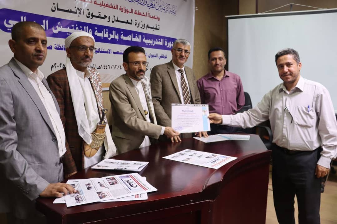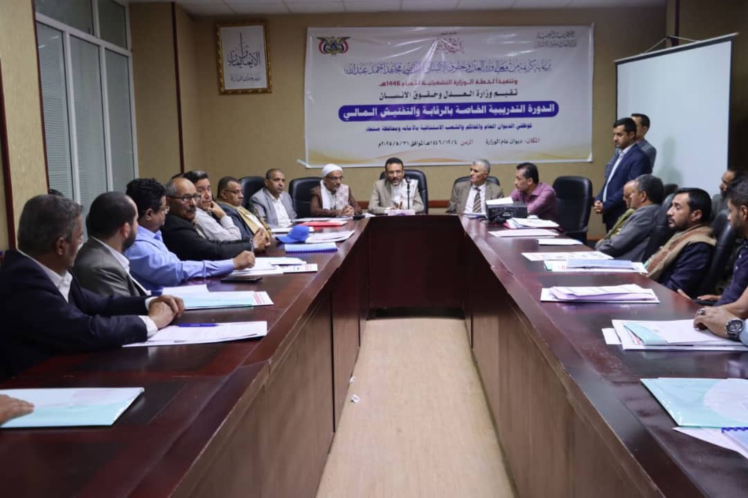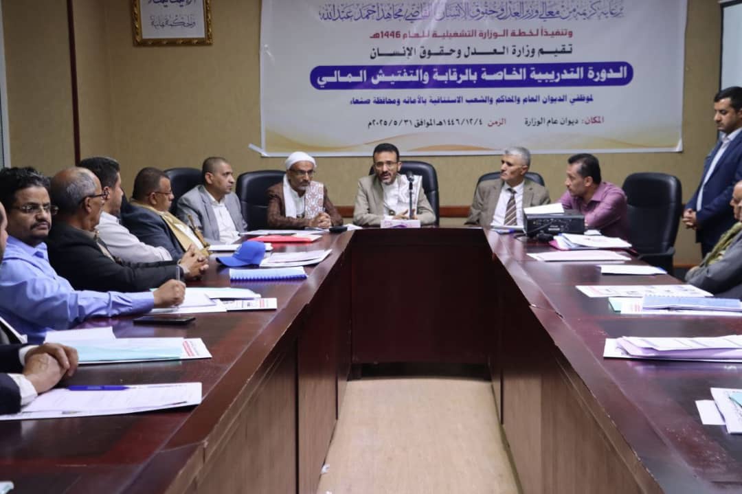 اختتمت بوزارة العدل وحقوق الإنسان، اليوم، دورة تدريبية في مجال الرقابة والتفتيش المالي، نظمتها الإدارة العامة للتدريب والتأهيل بالوزارة، بحضور نائب وزير العدل وحقوق الإنسان القاضي إبراهيم محمد الشامي.