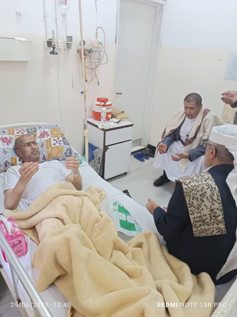 عقب ذلك تم الإطلاع على الحالة الصحية للقاضي صدام الحكمي الذي يرقد في احد المرافق الصحية بمركز المحافظة.