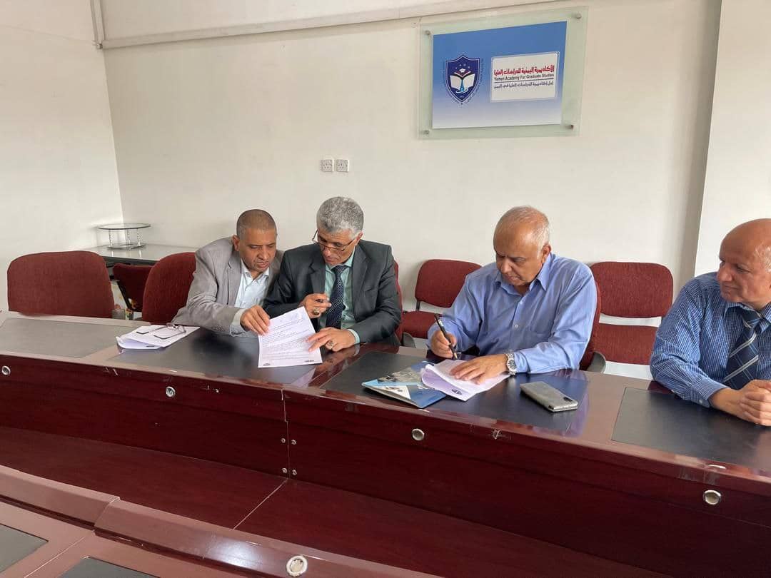 وقّع الاتفاقية عن وزارة العدل وحقوق الإنسان القاضي أحمد يحيى الكحلاني – وكيل الوزارة للشؤون المالية، وعن الأكاديمية الأستاذ الدكتور أحمد محمد الشامي – رئيس الأكاديمية اليمنية للدراسات العليا.