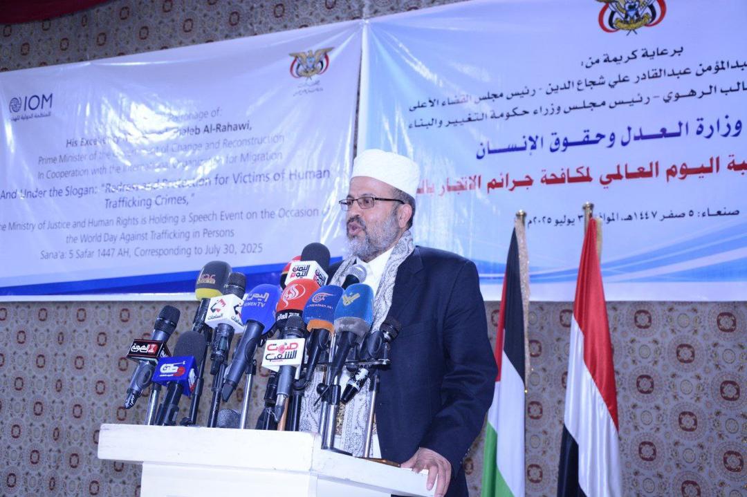 بحضور رؤساء وأعضاء من السلطة القضائية والتنفيذية و السلطة التشريعية، أحيت الجمهورية اليمنية، اليوم العالمي لمكافحة الاتجار بالبشر الذي يصادف 30 يوليو من كل عام، وذلك بفعالية نظمتها، اليوم، وزارة العدل وحقوق الإنسان.