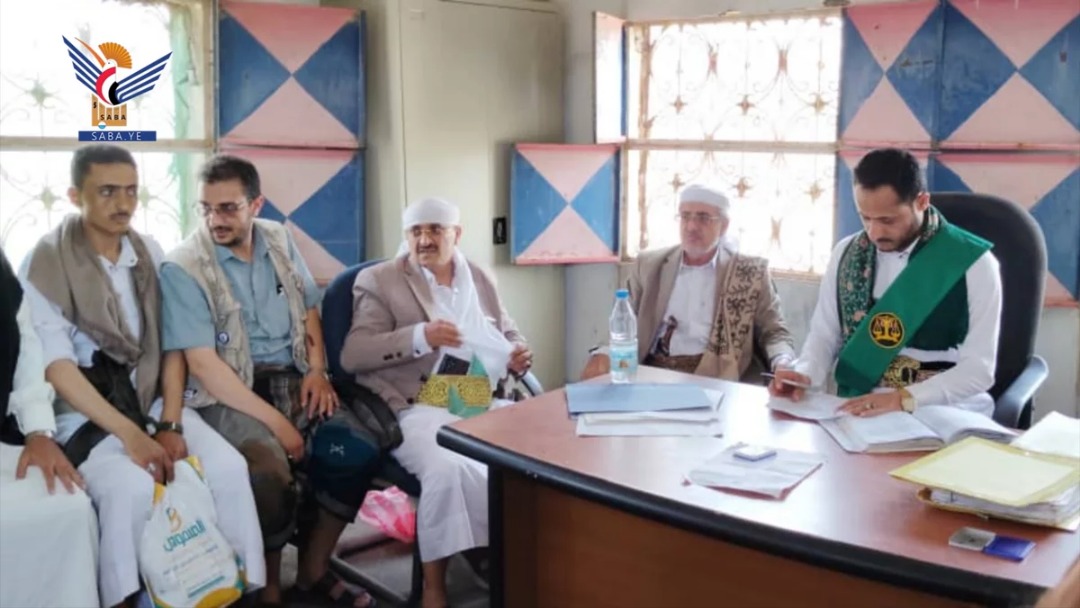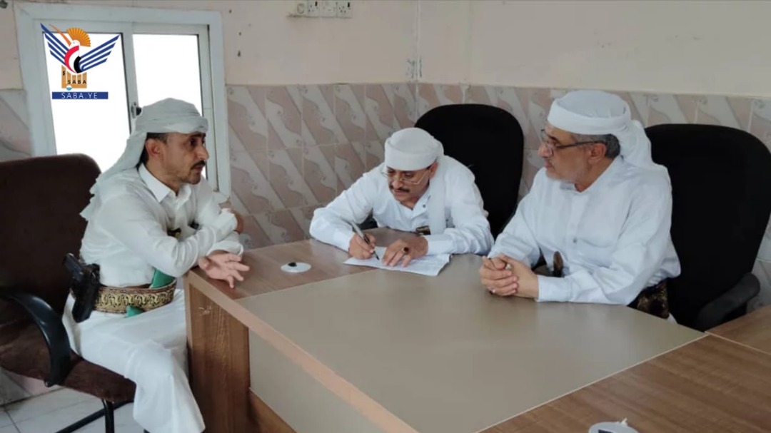 تفقد رئيس محكمة الاستئناف بمحافظة حجة، القاضي حسين الحوثي، اليوم، سير العمل في محاكم عبس، حرض، ميدي، أسلم، أفلح اليمن، وأفلح الشام الابتدائية.