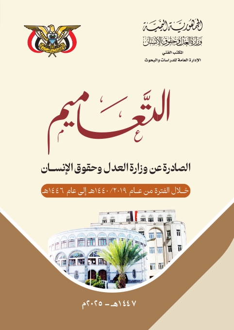 أصدرت وزارة العدل وحقوق الإنسان مؤخرًا كتابًا جديدًا بعنوان "التعاميم الصادرة عن وزارة العدل وحقوق الإنسان"، يضم بين دفتيه أبرز التعاميم والتعليمات الوزارية خلال الأعوام الماضية، مرتبة ومبوبة بما يسهّل الرجوع إليها من قبل المحاكم والهيئات القضائية المختلفة.