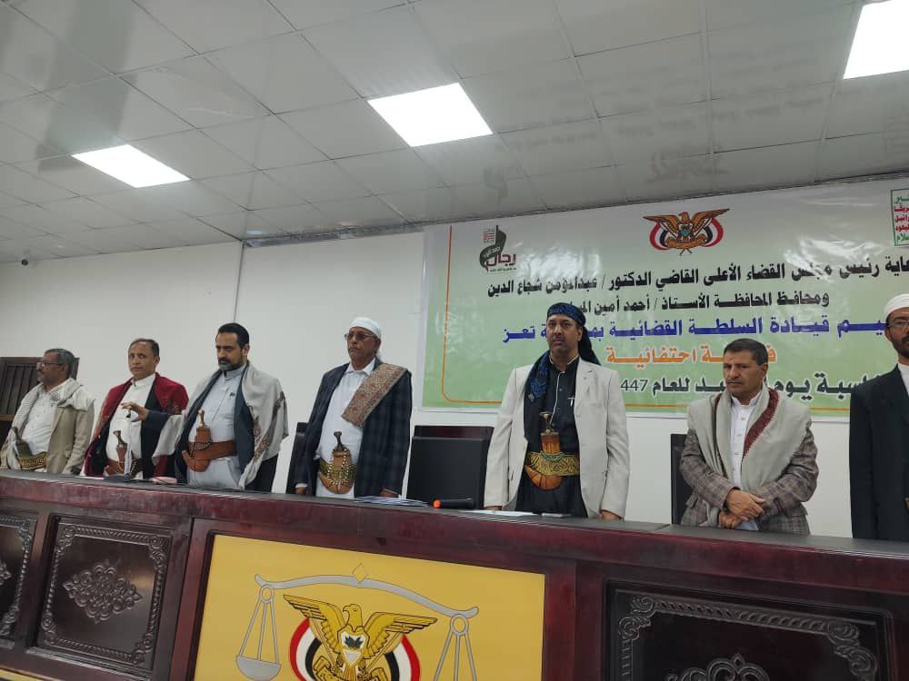 نظمّت السلطة القضائية بمحافظة تعز اليوم فعالية خطابية بالذكرى السنوية للشهيد 1447ه .